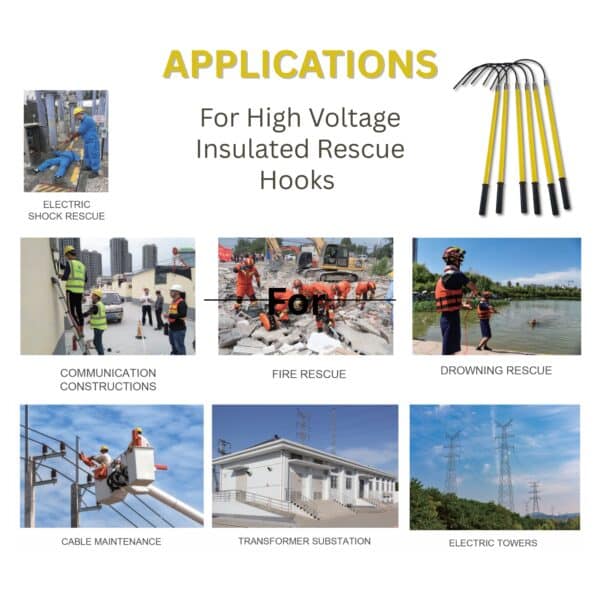 The Metravi HVIRH-1.5/35 High Voltage Insulated Rescue Hooks are used to withdraw an injured worker out of a hazardous area.